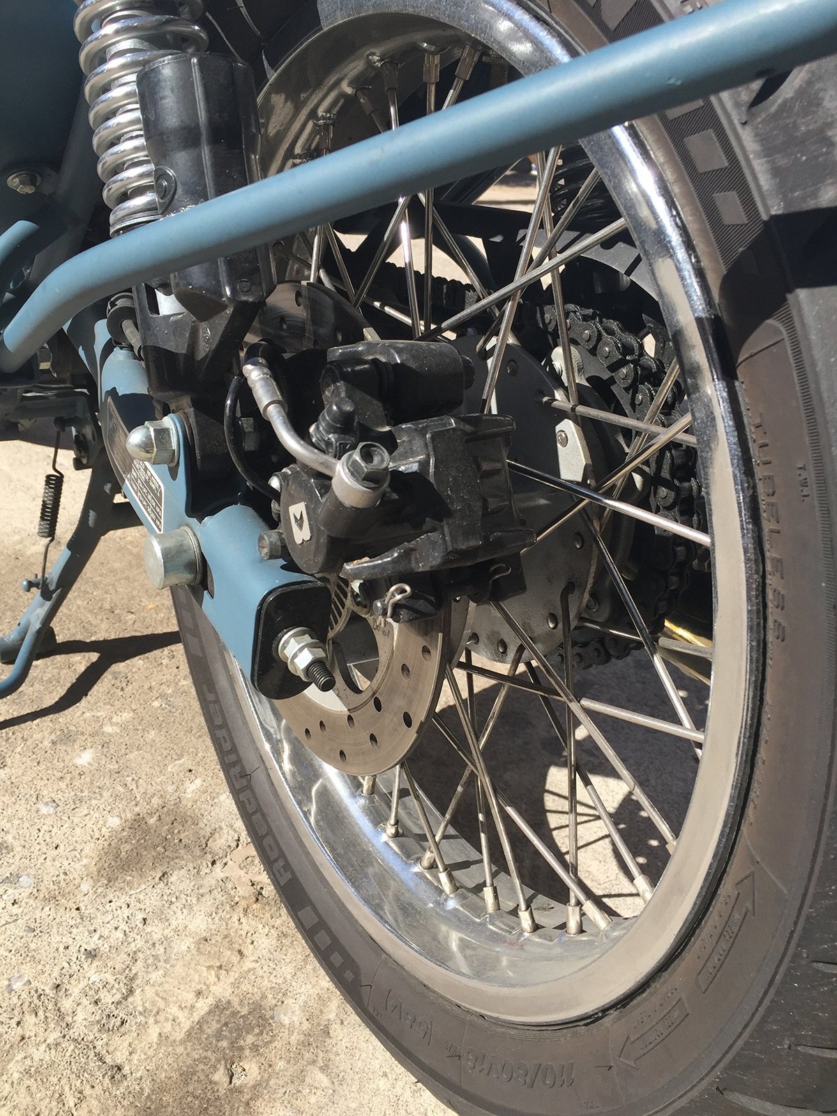 Su estética es realmente única y cuidada, con un color azul militar mate y la genuina tipografía Royal Enfield en el depósito la convierten en una auténtica retro con aires marciales.