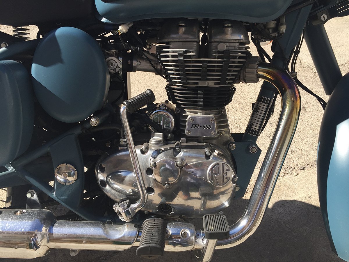 Pero aunque la Royal Enfield disponga de un “look” totalmente retro, no podemos olvidar que se trata de una motocicleta fabricada en el Siglo XXI y que ha tenido que pasar la restrictiva normativa Euro4 para poder ser homologada correctamente.