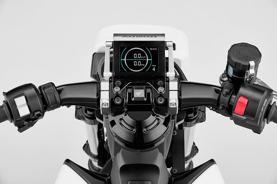 Es una Concept eléctrica con una estética que nos recuerda mucho a la Honda X-ADV, con basculante monobrazo, neumáticos Bridgestone, frenos Nissin y un panel de instrumentos sacado directamente de Blade Runner.